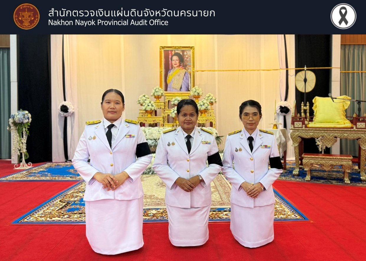 วันที่ 22 พฤศจิกายน 2568 สำนักตรวจเงินแผ่นดินจังหวัดนครนายก ร่วมพิธีบำเพ็ญกุศล ในพิธีสวดพระอภิธรรมอุทิศถวายพระราชกุศลแด่ สมเด็จพระนางเจ้าสิริกิติ์ พระบรมราชินีนาถพระบรมราชชนนีพันปีหลวง พฤศจิกายน 26, 2025พฤศจิกายน 26, 2025